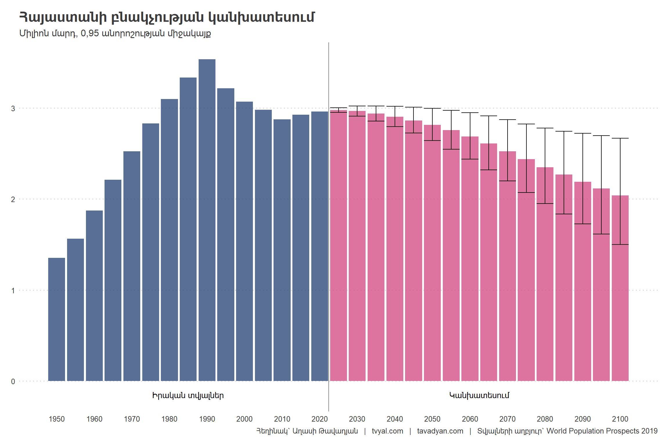 By 2100, all other conditions being equal, 2 million Armenians will live in Armenia.
