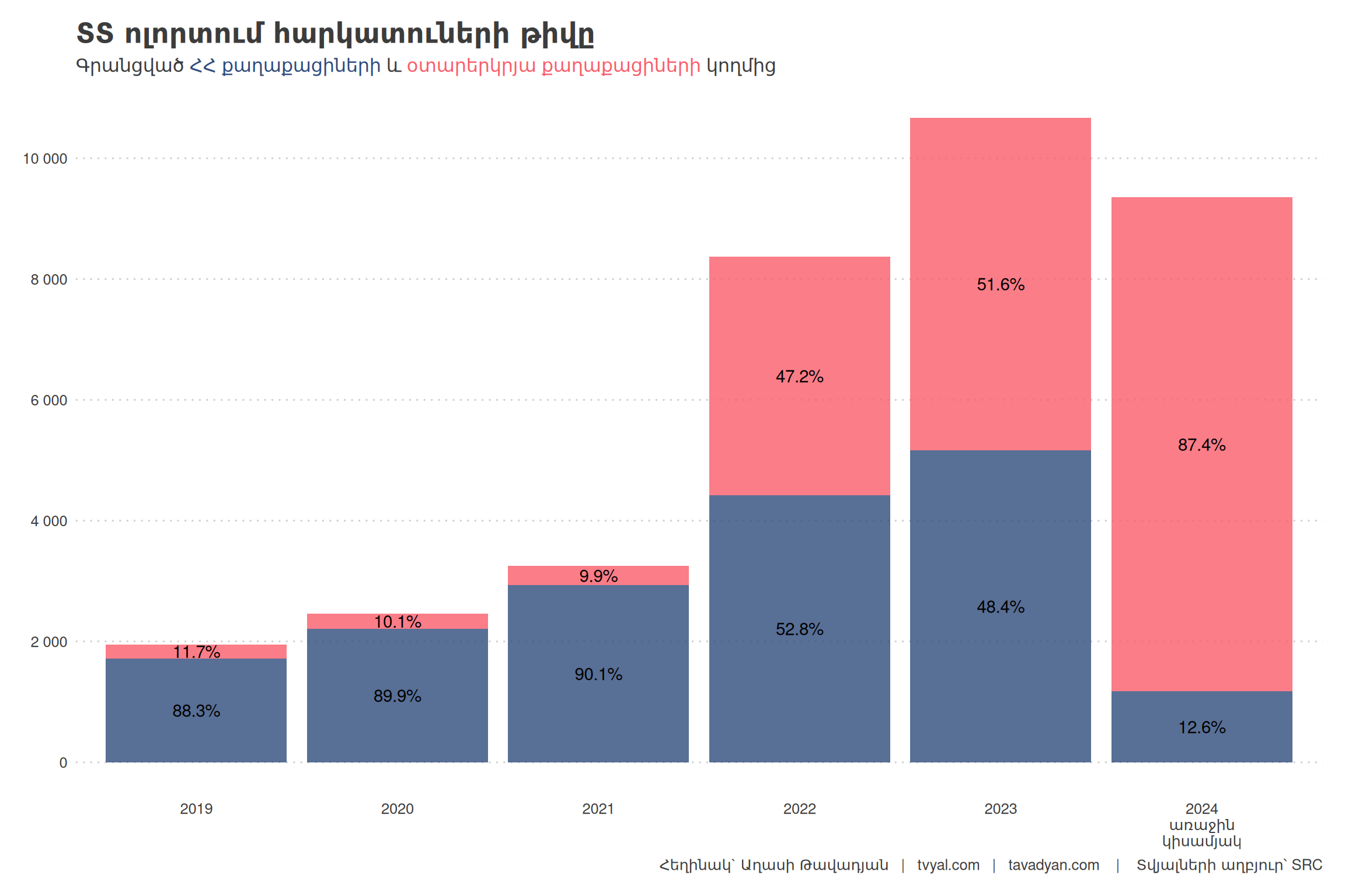- IT companies registered by RA citizens: the number dropped sharply from 5,163 to 1,174 (a 4.4-fold decrease).