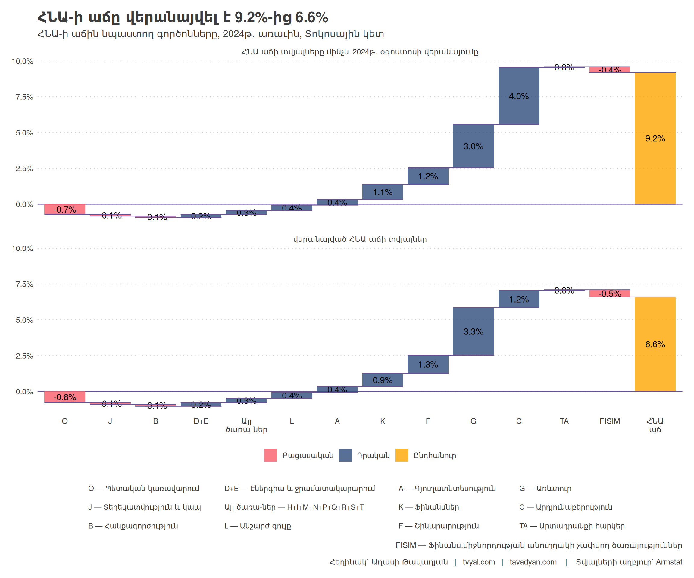 The decline of the IT sector is particularly concerning. After registering declines for three consecutive quarters, this strategic sector no longer contributes positively to GDP growth. This trend calls into question the sustainability of Armenia’s technology-driven growth strategy and the reasons for this reversal. This points to a crisis within the sector. Read more in our analysis on IT: ๐๐ฆ๐ฒ๐ง๐ผโ๐ป SOS Armenian IT: Armenia’s IT sector, from strategic priority to potential decline
