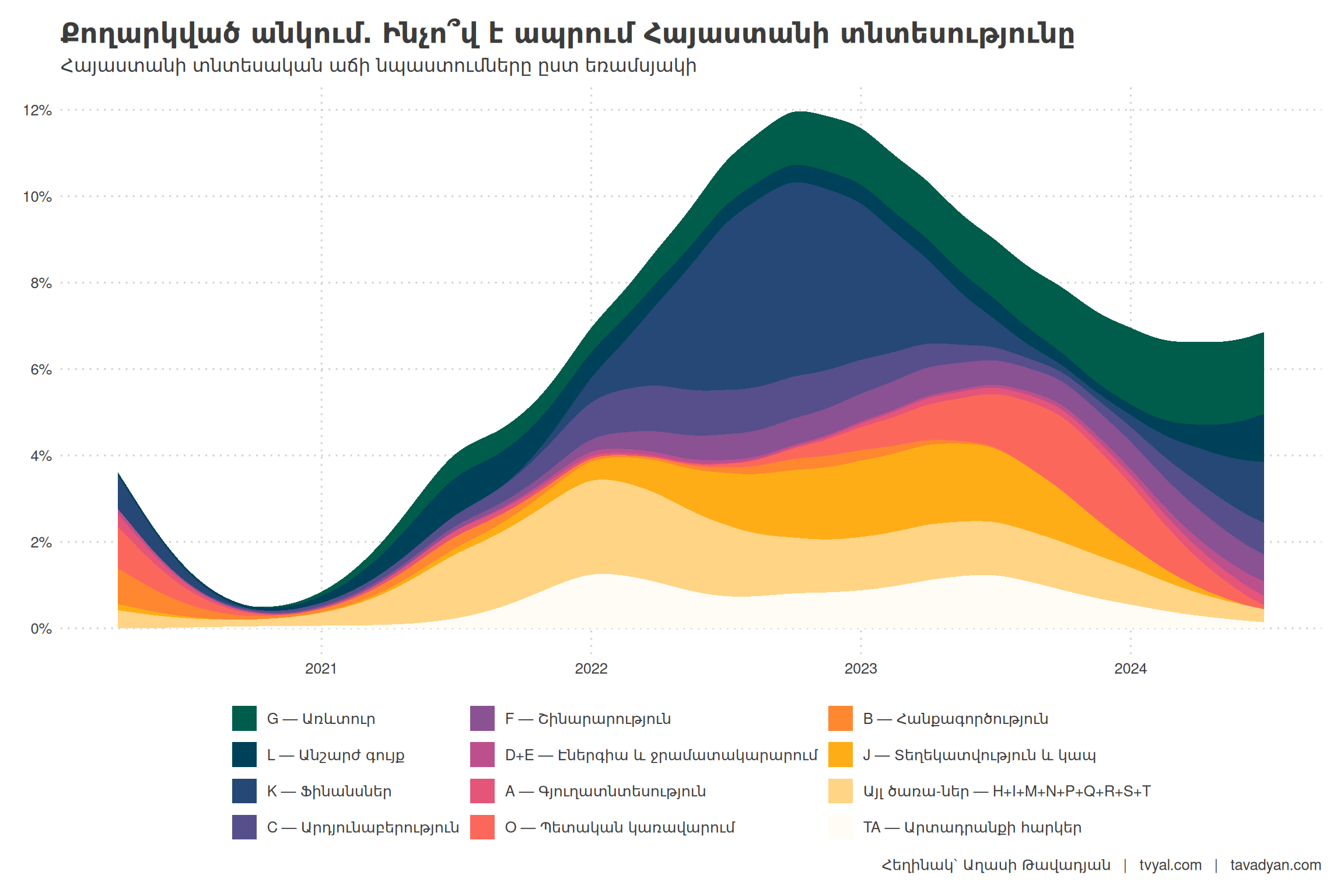 - Growth is mainly driven by trade, real estate, and financial services, which are dependent on external factors (more: ๐ ๐๐ Beyond the Border: Armenia’s Tourist Surge and Potential Decline).