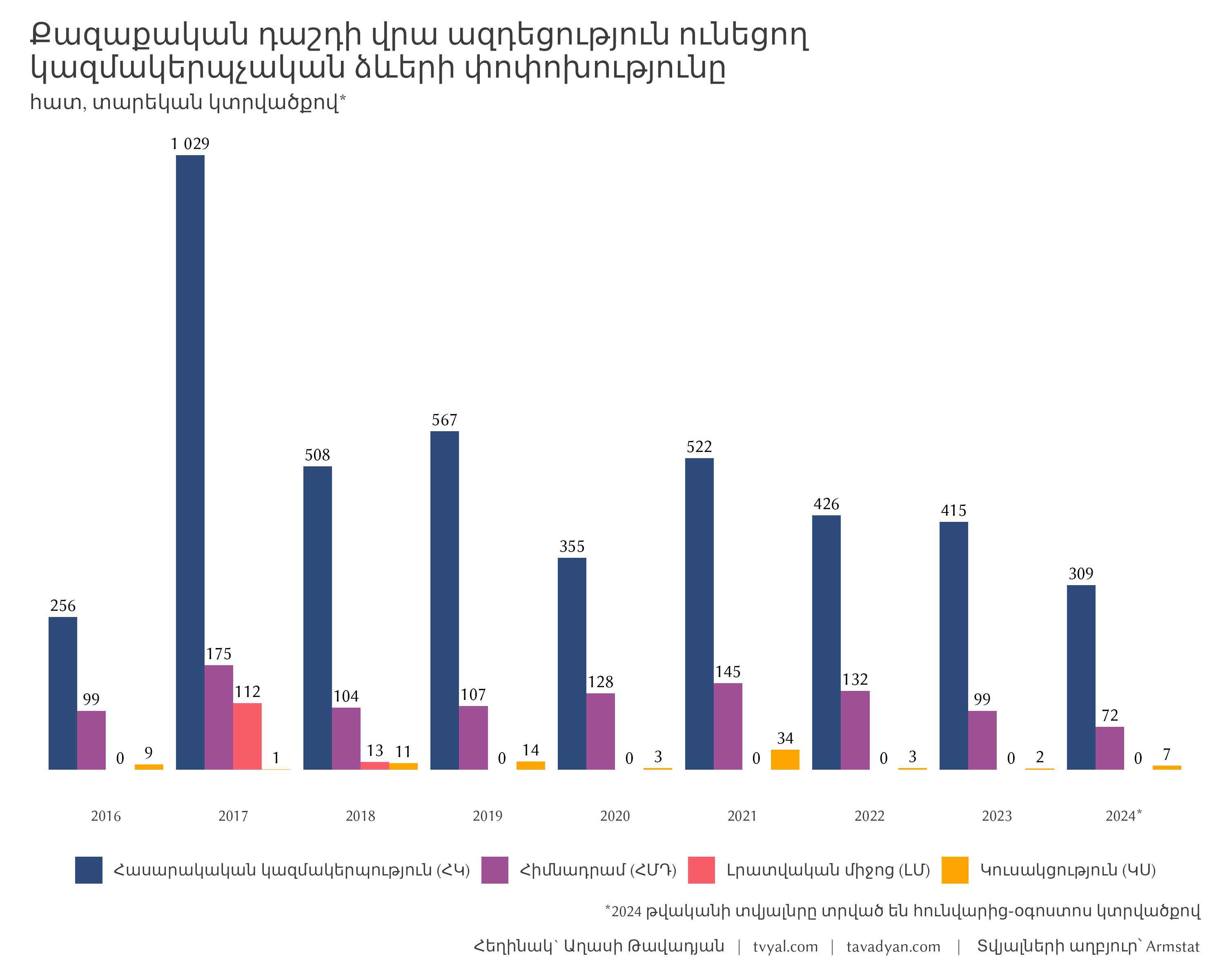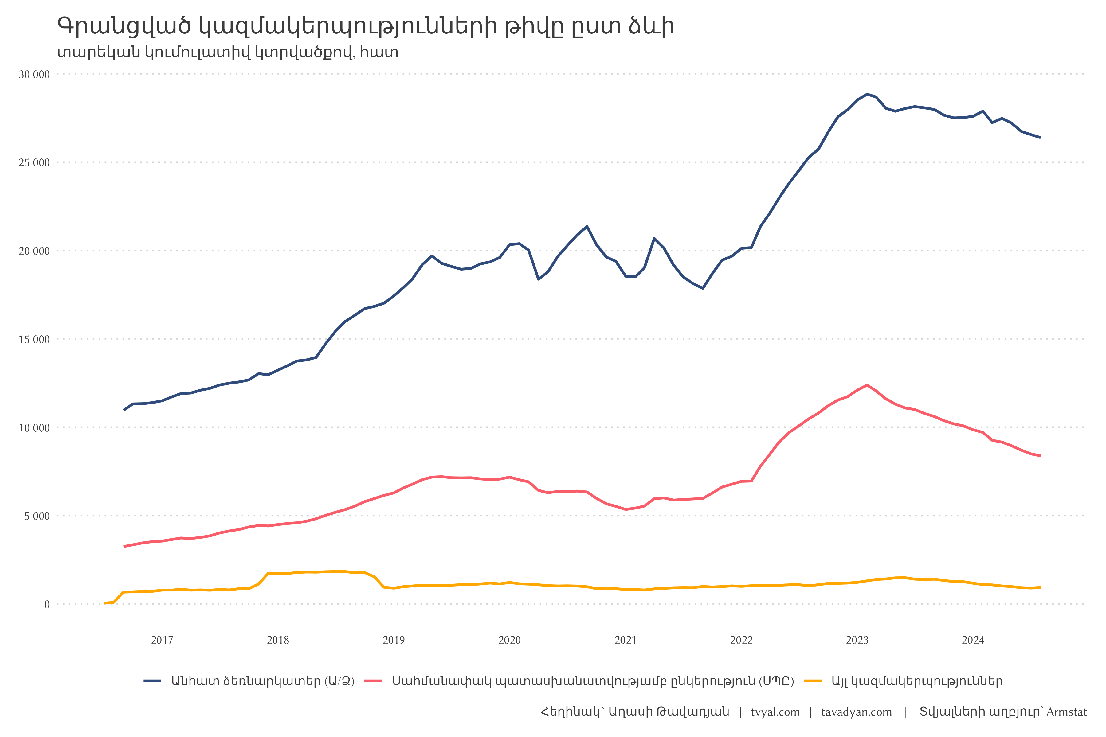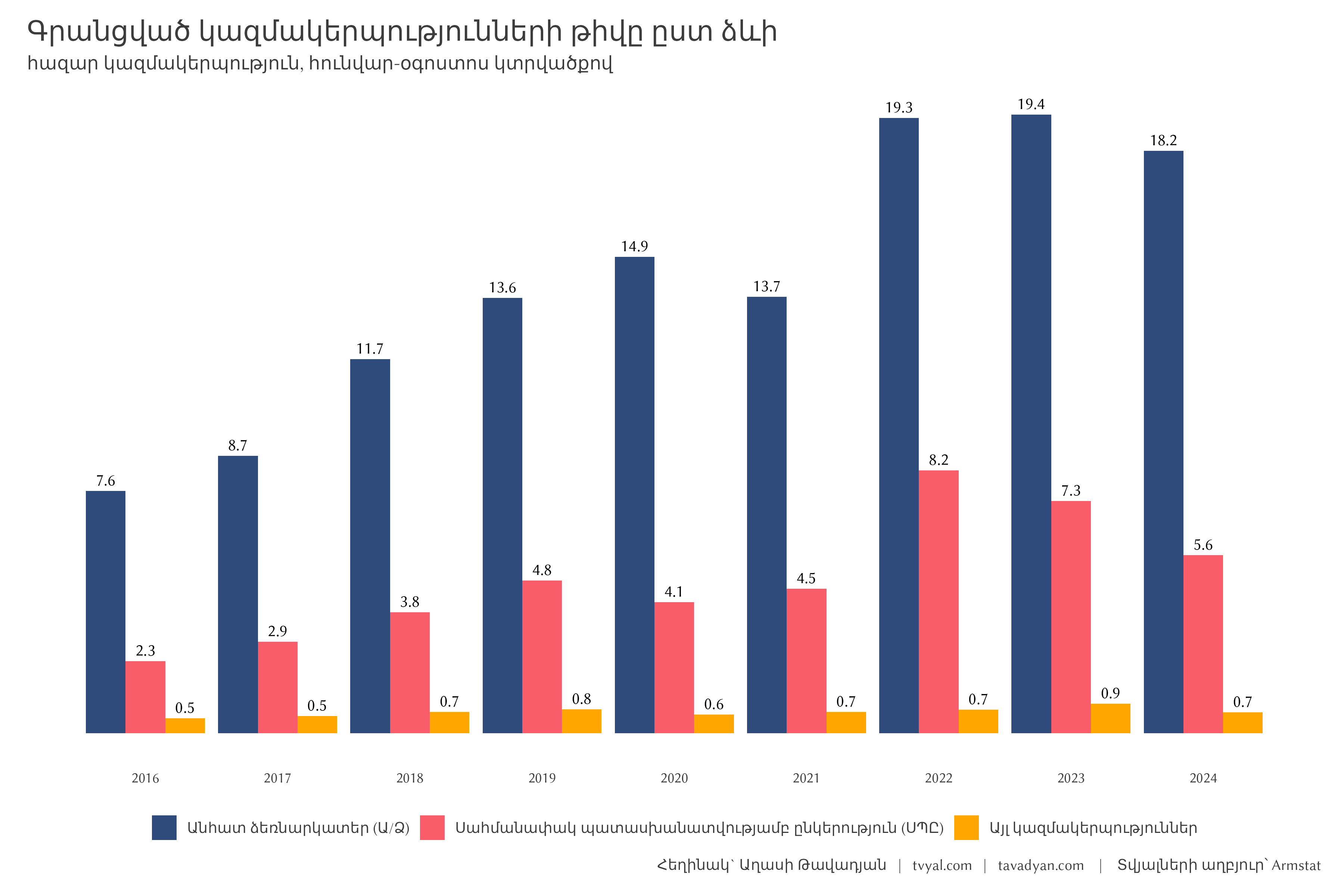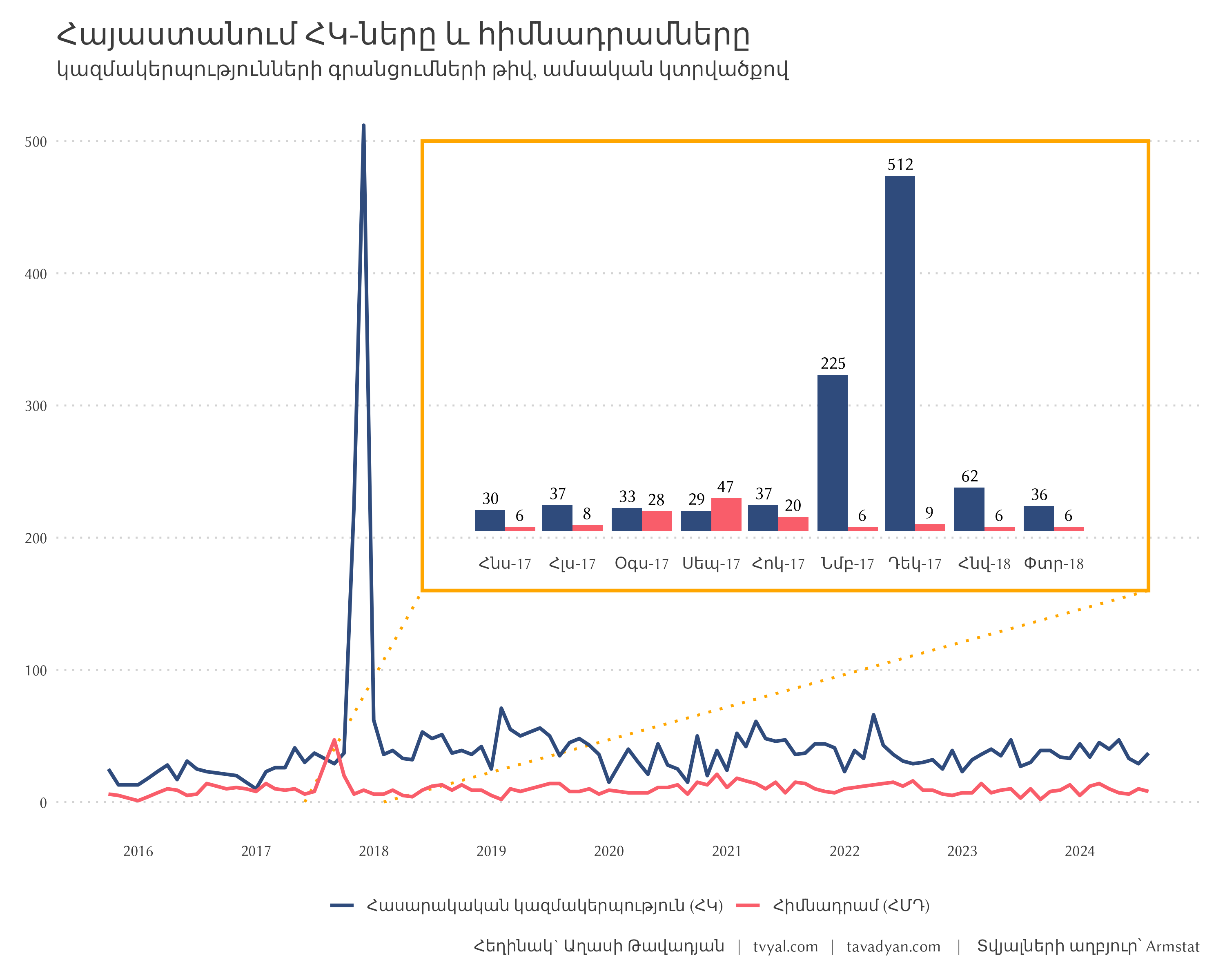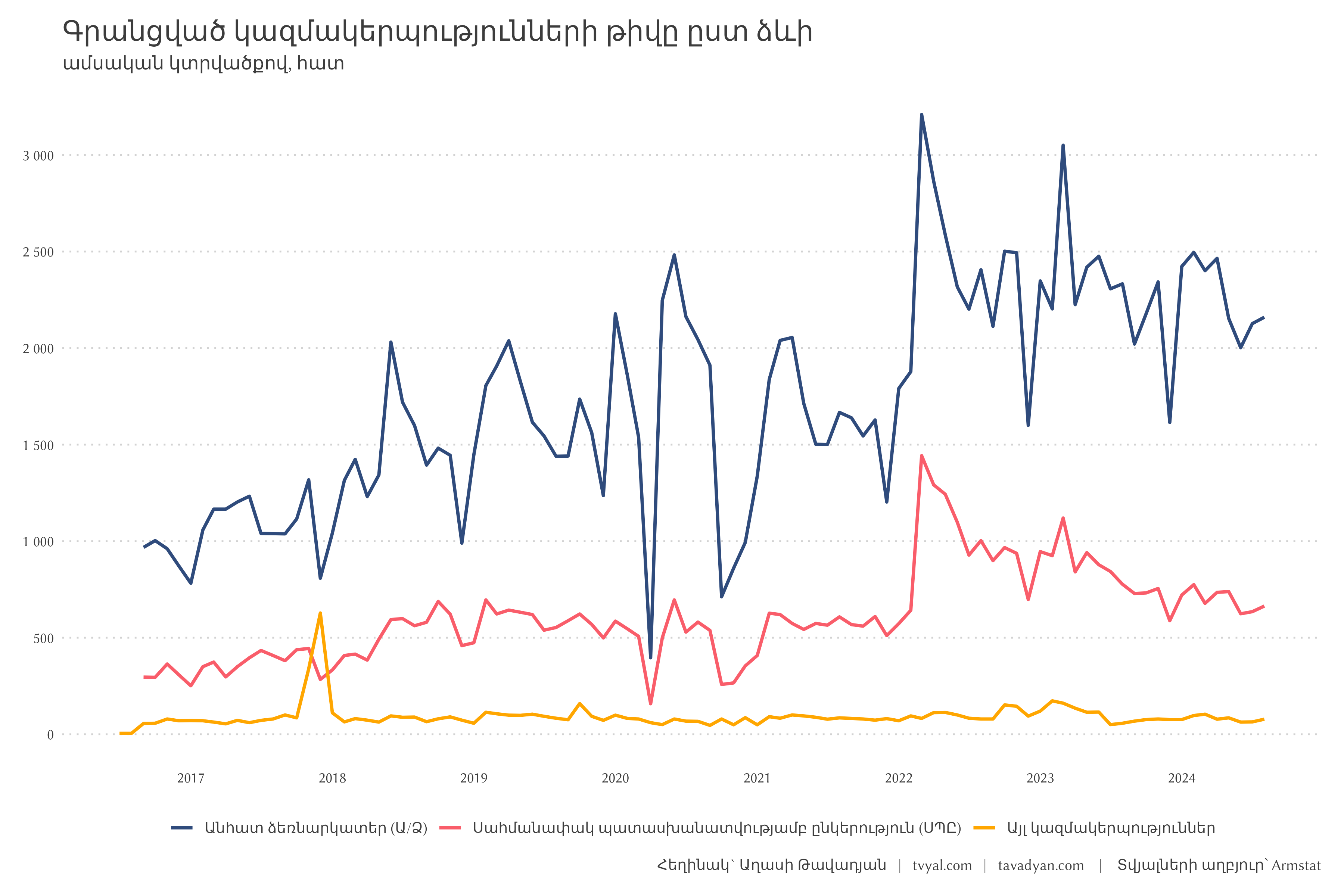 This week we decided to explore the change in organizational forms in Armenia, as a result of which we discovered two interesting stories about economic activity and velvet commotion. Our research is divided into two parts: