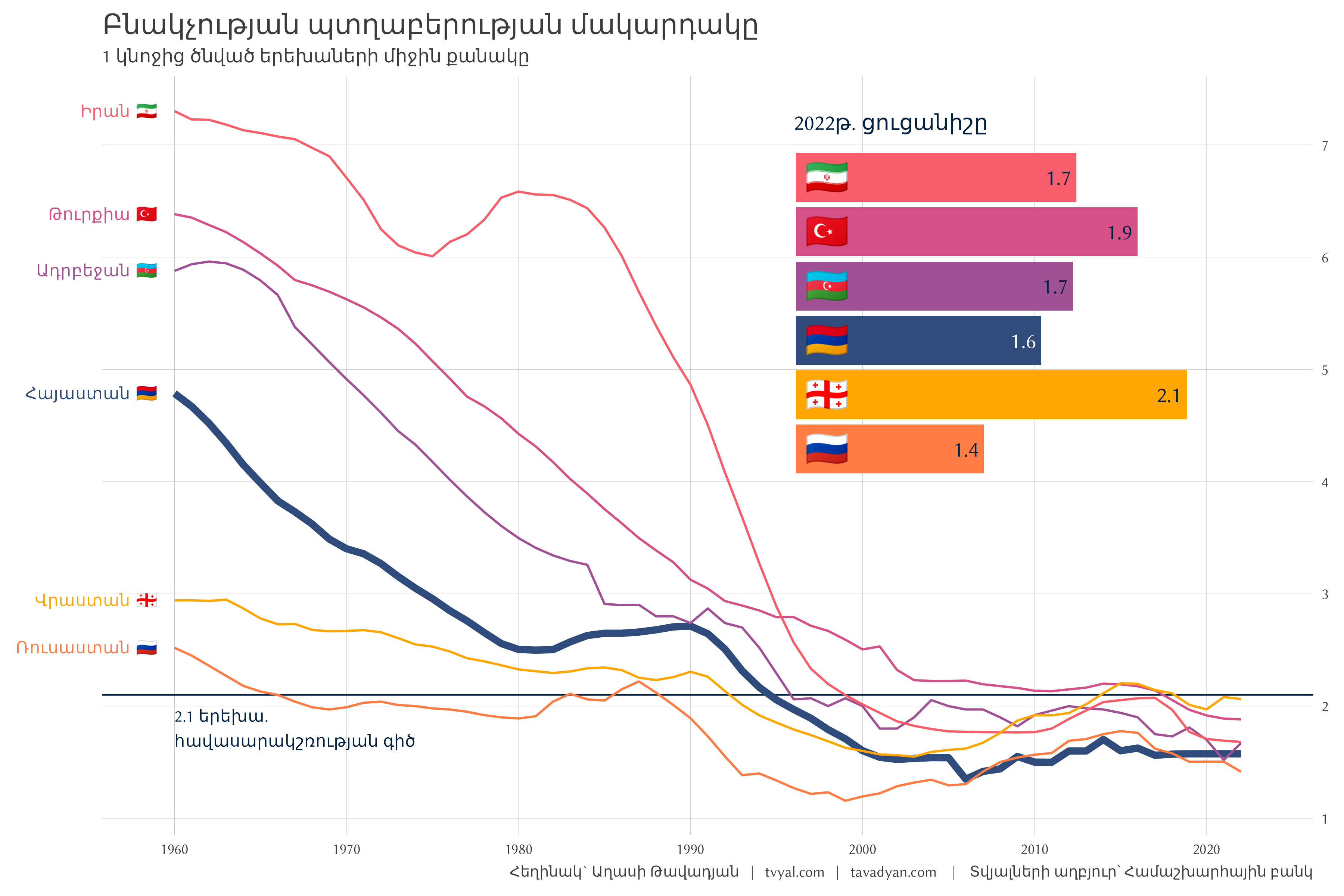 However, the current fertility rate in Armenia is only 1.6, which is significantly below the level needed to maintain the population.