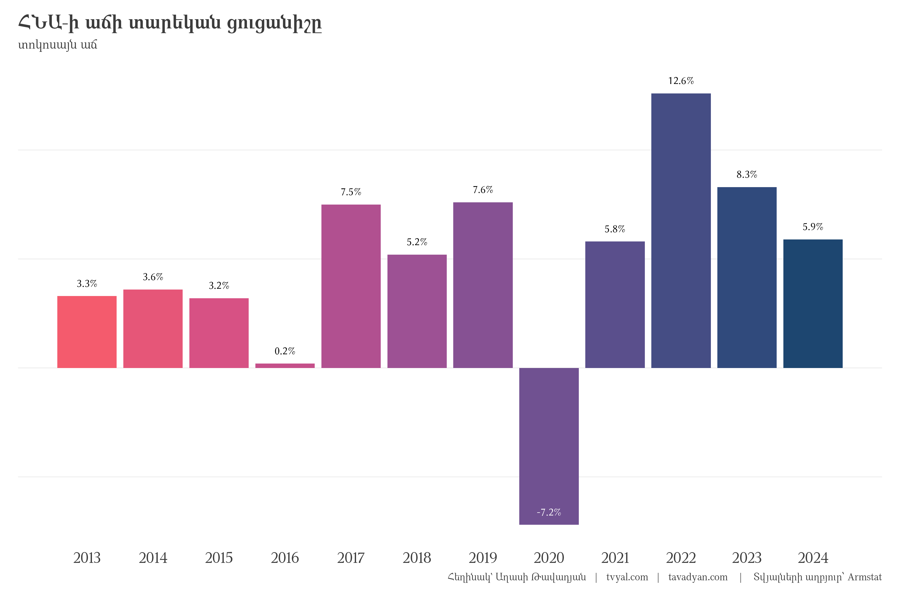 - Long-term average growth: Armenia’s long-term average economic growth rate is around 4.5%. Any system tends to return to its long-term average unless there are qualitative changes in the given system that can ensure stable, long-term creation of value added.